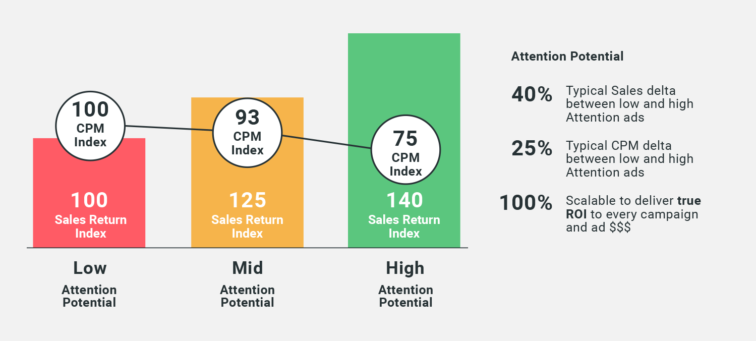 Multiple advertising partners have validated the inverse relationship between Attention Potential and CPM. One advertiser for example saw that just a 1% increase in Attention Potential would decrease CPM by 2.7%. Â Â