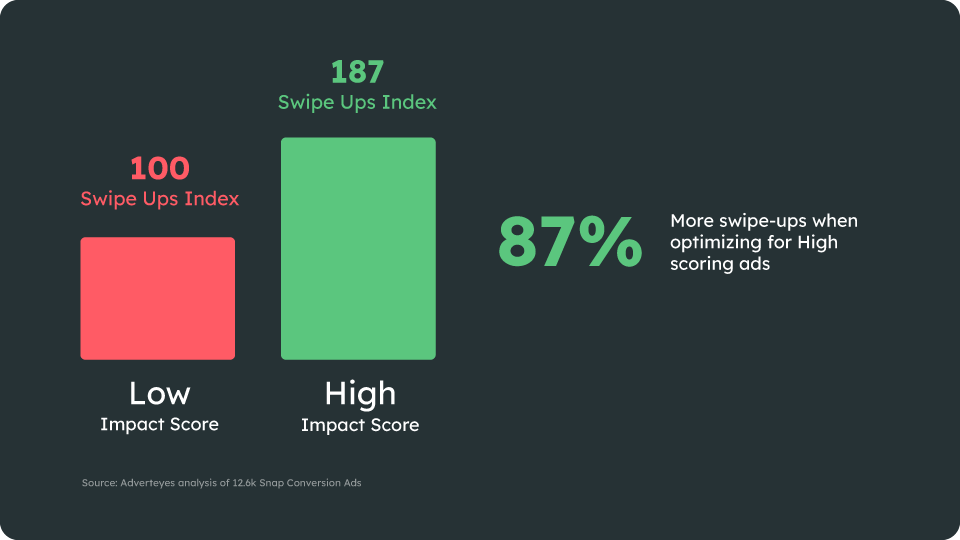 The Snap Impact Score synthesizes these signals. Top scoring ads drove 87% higher CTR.